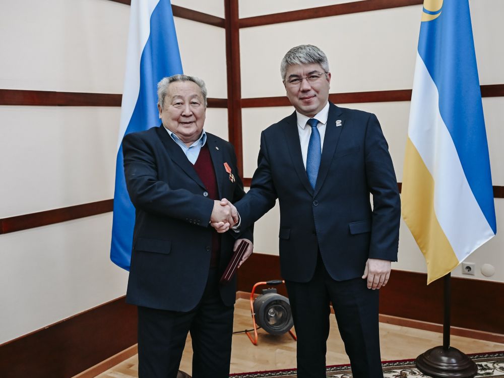 "В новом рабочем году мы начинаем наш Совет с приятной миссии – вручения уважаемому Арнольду Кирилловичу заслуженной награды, которая утверждена Указом Президента за заслуги в научной деятельности и многолетнюю добросовестную работу", – отметил Алексей Цыденов.